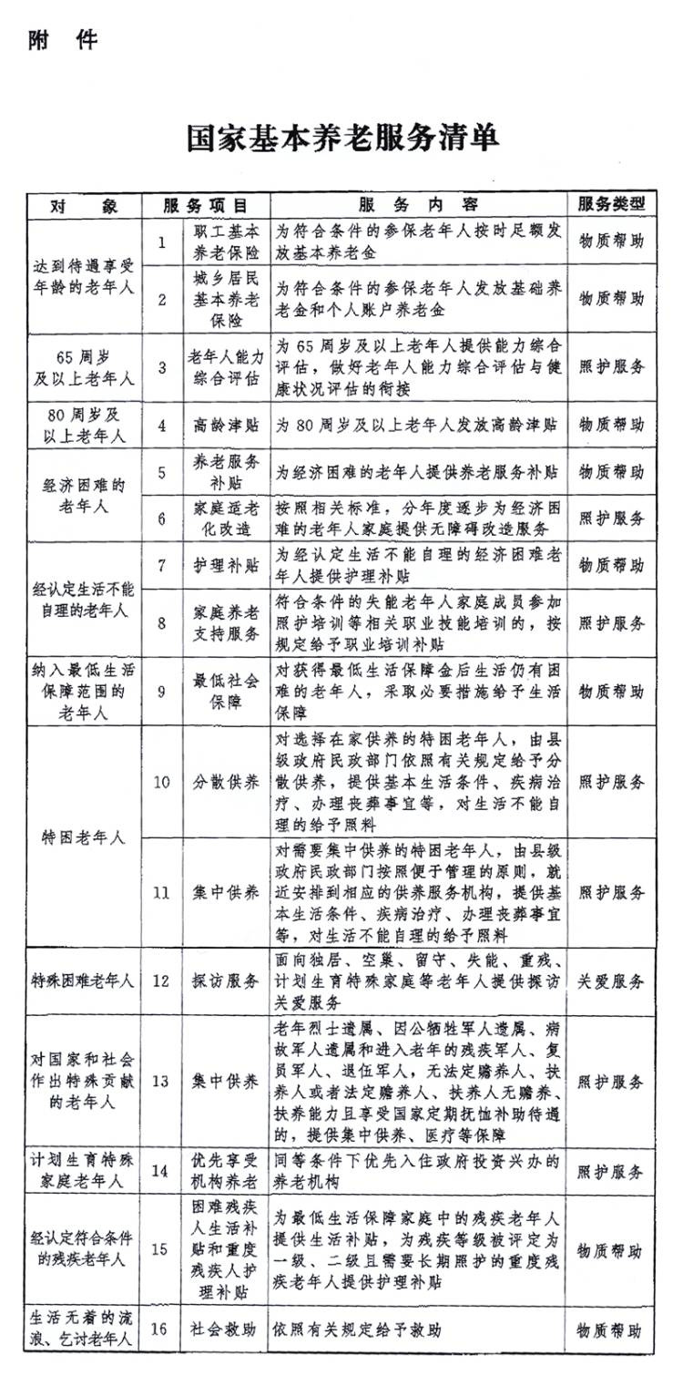 附件:國家基本養(yǎng)老服務(wù)清單