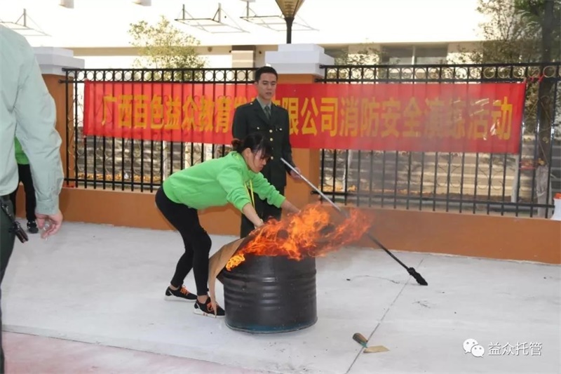 ? ? ? ?為進一步提高員工消防安全防范意識,增強員工對突發(fā)火災的應急處置能力,根據《廣西百色益眾教育發(fā)展有限公司2018年消防宣傳月活動方案》安排,2018年11月8日,廣西百色益眾教育發(fā)展有限公司聯合百色市市安防火中心在我司承接托管業(yè)務的百色市第一小學校區(qū)開展了"防災減災進校園 ?自防自救保安全"消防安全培訓活動。本次活動結合近年來發(fā)生的典型火災案例,將消防知識和學校、學生安全緊密聯系起來,深入剖析了火災案例的教訓并詳細的講解了火災類型、火災成因、火災最佳處置時機、應急疏散跟自救逃生方法、各類滅火器材的使用等消防知識。為加深廣大員工對理論知識的理解,讓防災減災意識"入腦入心",本次活動還相應開展了現場初期火災處置演練。通過本次活動,廣大員工的消防安全意識得到了進一步提高,應急疏散和避險能力有了質的飛躍,為我司更好的為學校、學生提供貼心服務打下了良好的基礎。