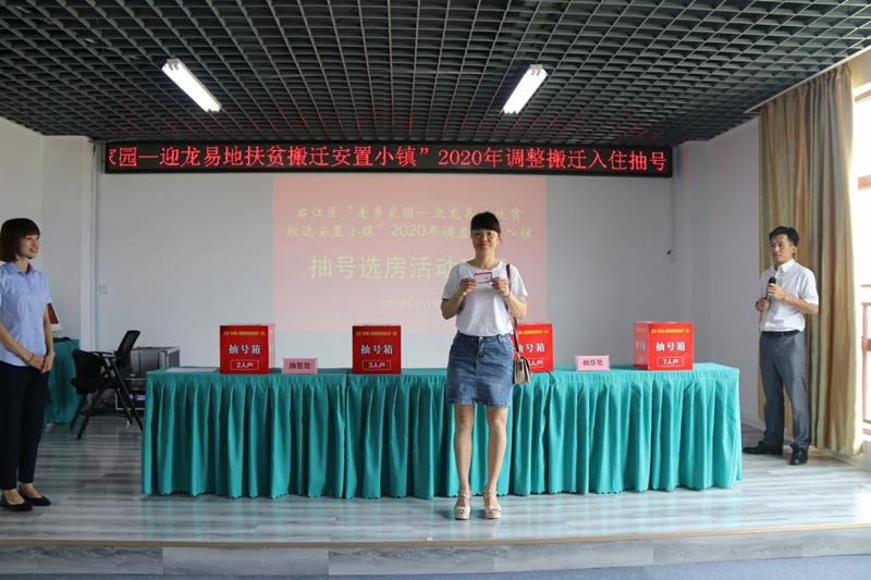 6月14日,右江區(qū)“老鄉(xiāng)家園—迎龍易地扶貧搬遷安置小鎮(zhèn)”2020年調(diào)整搬遷入住工作拉開了序幕。當日上午,符合本次新調(diào)入搬遷對象的搬遷戶在益眾公司老鄉(xiāng)家園(益眾.尚城商業(yè)樓B1棟)辦公區(qū)舉行現(xiàn)場抽號選房、簽約手續(xù)。