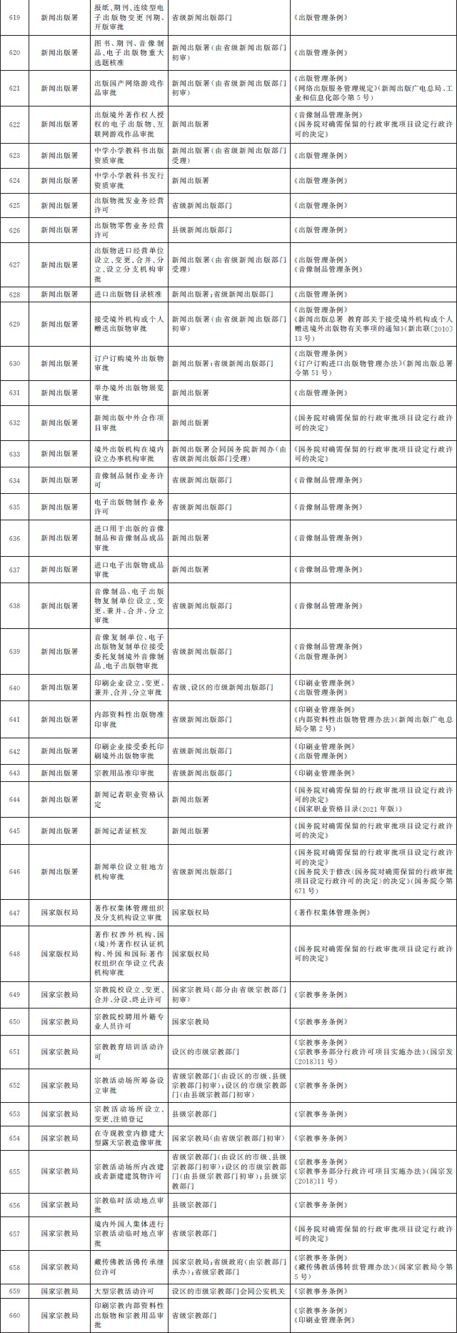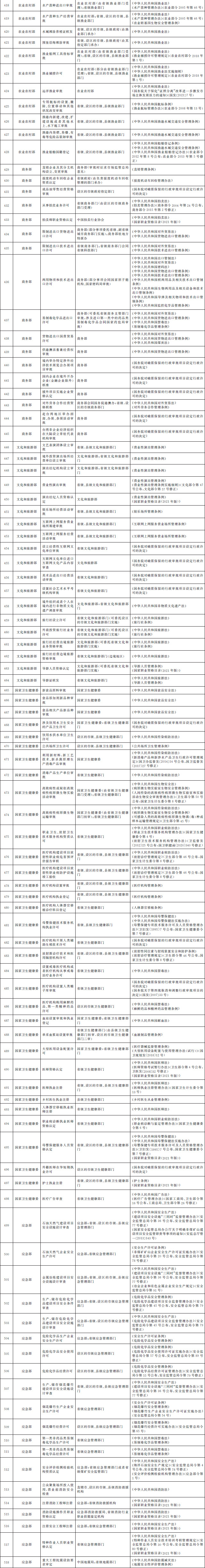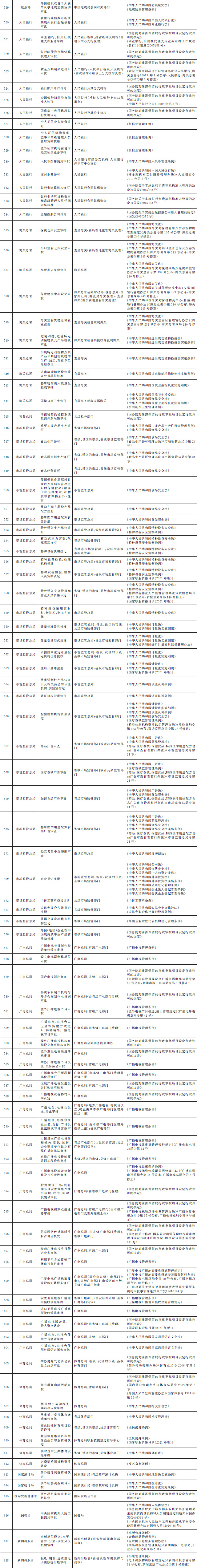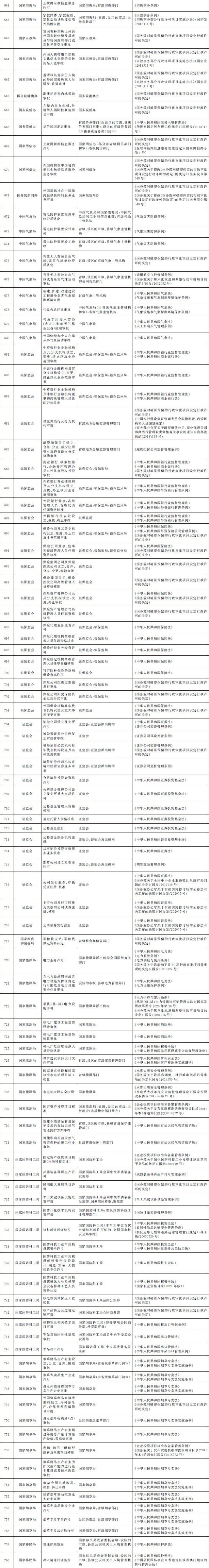 法律、行政法規(guī)、國(guó)務(wù)院決定設(shè)定的行政許可事項(xiàng)清單